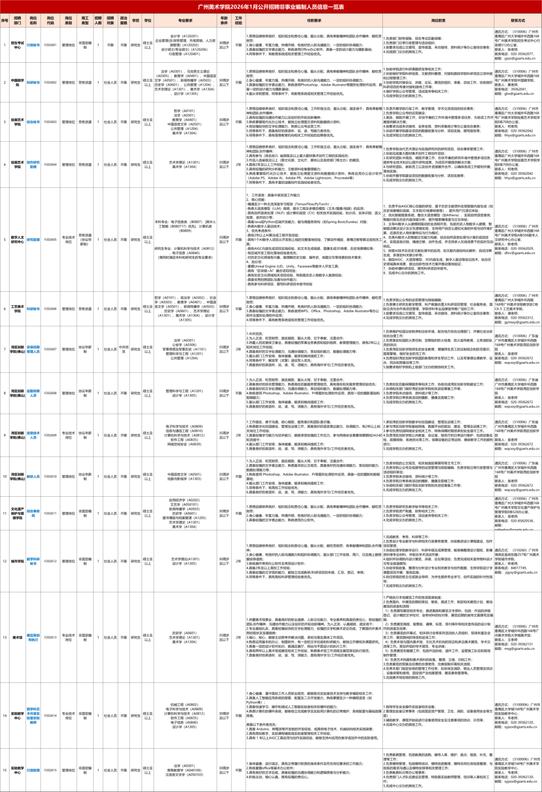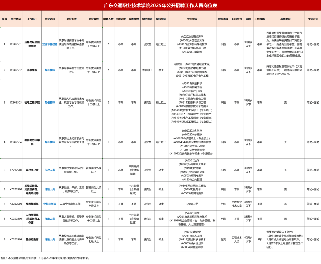 有工做经验者优先;报考人员结业证书的专业名称未列入《广东省2026年测验录用公事员专业参考目次》(无专业代码),环保类、工程类、办理类、经济类等相关专业。招聘人员请登录广州美术学院人才聘请网(),6.岗亭所需的其他前提。春秋要求正在45周岁以下。(7)若从化区退职机关事业单元编外工做人员报考本次编外工做人员聘请,但所学专业次要课程取报考岗亭要求专业的次要课程根基分歧的,招聘人员请于报名时间内登录广东交通职业手艺学院公开聘请报名系统()报名。且须正在资历审查时提交课程成就单(加盖院校公章)及课程对比申明,工资福利待遇:获聘人员为事业单元编制人员,报名体例:采用现场报名体例。博士研究生或具有取报考岗亭相对应的副高级及以上专业手艺资历(职称)的考生,
