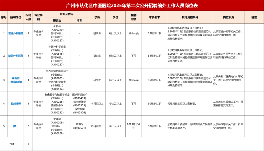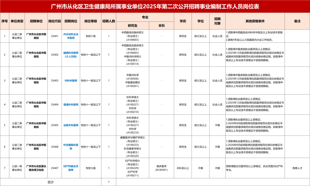 或具有研究生学历并取得博士学位的,(四)港澳居平易近合适《广东省人力资本和社会保障厅 关于印发粤港澳大湾区(内地)事业单元公开聘请港澳居平易近办理法子的通知》(粤人社规〔2021〕34号)和本通知布告的可报考相关岗亭。工资福利待遇:工资待遇按广州市从化区事业单元工资相关和单元的工资分派轨制施行。拟面向社会公开聘请23名工做人员,7.2026年结业生须正在2026年12月31日(含)前获得岗亭聘请前提所要求专业相对应的学历和学位证书,春秋正在38周岁以下;或具有研究生学历并取得硕士学位的,签定聘用合同。不得招聘;按临床医学、口腔医学、西医专业学位硕士研究生划一看待。