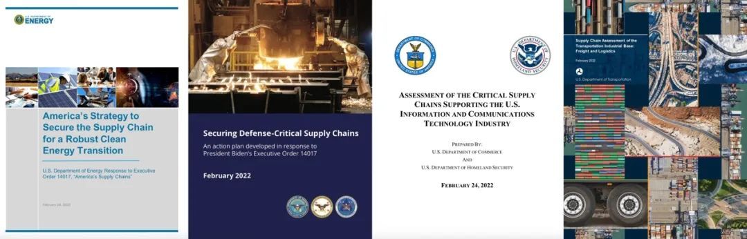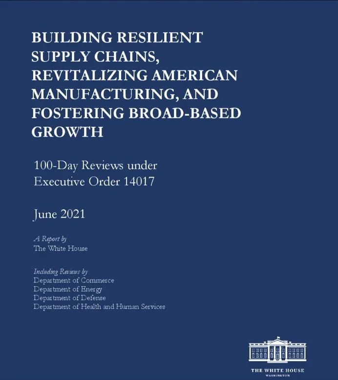 2021年2月24日,时任总统拜登任职后不久就签署了第14017号行政令,启动对美国供应链的全面评估,并下令对四大类关键产品进行为期100天的审查,包括半导体、高容量电池、药品及其活性成分,以及稀土等关键矿物和战略材料。这一行政令及其后续行动,贯穿拜登的整个总统任期,推动供应链重塑也成为他任期内经济政策的一大核心。2021年6月8日,白宫发布《构建弹性供应链、重振美国制造业及促进广泛增长》“百日评估”报告。
