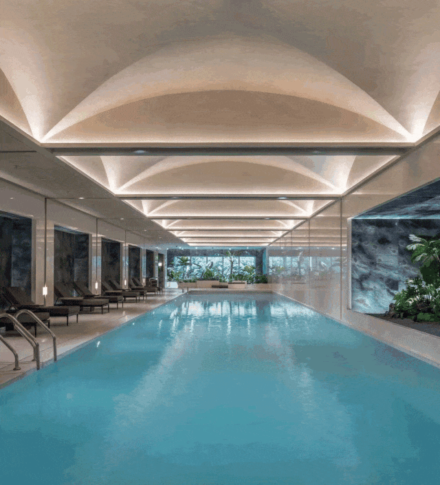 二楼通过专业餐酒吧设备、艺术光厅、女性敌对健身房、上海首个度假打动物园泳池等营制艺术感会所!