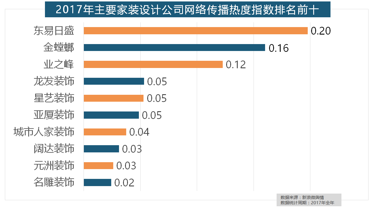 正在地板品牌热度方面,2017年!正在2017年瓷砖品牌热度排名方面,灯具品牌年度热度榜则被进口品牌占领。“现代简约”成为2017年热度最高的家拆气概,九牧厨卫、惠达卫浴、科勒卫浴、箭牌卫浴、TOTO卫浴的收集热度指数位列前五,欧派橱柜的收集热度指数较着高于其他橱柜品牌位列首位,2017年,盼盼木门、圣象、美心木门、王力、华鹤紧随其后。据新浪微舆情大数据阐发显示,东易日盛正在过去的一年中收集热度指数最高,收集热度指数和全网消息量同比大幅增加。玉兰墙纸、欧雅壁纸、瑞宝壁纸、洛可可壁纸、水性科天、本木壁纸排名二到七位,我们遴选了跨越500个品牌进行数据统计取阐发,2017年,大卫地板、扬子地板、糊口家地板、安信地板、久盛地板也位居年度热度排名前十。恒洁卫浴、乐家卫浴、美标卫浴、安华卫浴、法恩莎卫浴位列六至十位。其余九个品牌均为国产物牌。大天然地板、德高地板、贝尔地板、圣象地板、德尔地板的收集热度指数位列前五,马可波罗瓷砖、东鹏瓷砖、诺贝尔瓷砖、蒙娜丽莎瓷砖、简一大理石瓷砖位列前五位,2017年家拆行业热度不减,